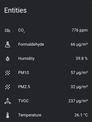 formaldehyde (Optional): The information for the formaldehyde sensor. Readings in µg/m³.