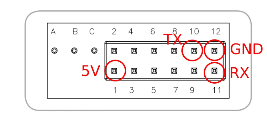 Pins on the T6615. Only the ones marked with a red circle need to be connected.