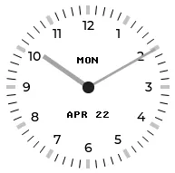 lvgl: ... style_definitions: - id: date_style text_font: unscii_8 align: center text_color: 0x000000 bg_opa: 60% radius: 4 pad_all: 2 pages: - id: clock_page widgets: - obj: # clock container height: SIZE_CONTENT width: 240 align: CENTER pad_all: 0 border_width: 0 bg_color: 0xFFFFFF widgets: - meter: # clock face height: 220 width: 220 align: CENTER bg_opa: TRANSP border_width: 0 text_color: 0x000000 scales: - range_from: 0 # minutes scale range_to: 60 angle_range: 360 rotation: 270 ticks: width: 1 count: 61 length: 10 color: 0x000000 indicators: - line: id: minute_hand width: 3 color: 0xa6a6a6 length: 96% value: 0 - range_from: 1 # hours scale for labels range_to: 12 angle_range: 330 rotation: 300 ticks: width: 1 count: 12 length: 1 major: stride: 1 width: 4 length: 10 color: 0xC0C0C0 label_gap: 12 - range_from: 0 # hi-res hours scale for hand range_to: 720 angle_range: 360 rotation: 270 indicators: - line: id: hour_hand width: 5 color: 0xa6a6a6 length: 70% value: 0 - label: styles: date_style id: day_label y: -30 - label: id: date_label styles: date_style y: 30