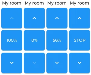 This example illustrates a control panel for three covers, made up of labels and discrete buttons. Although a button matrix could also be suitable for this, you might still prefer fully-featured individual buttons, as they offer a wider range of customization possibilities as seen in the Cover status and control example. Here we use the Flex layout: